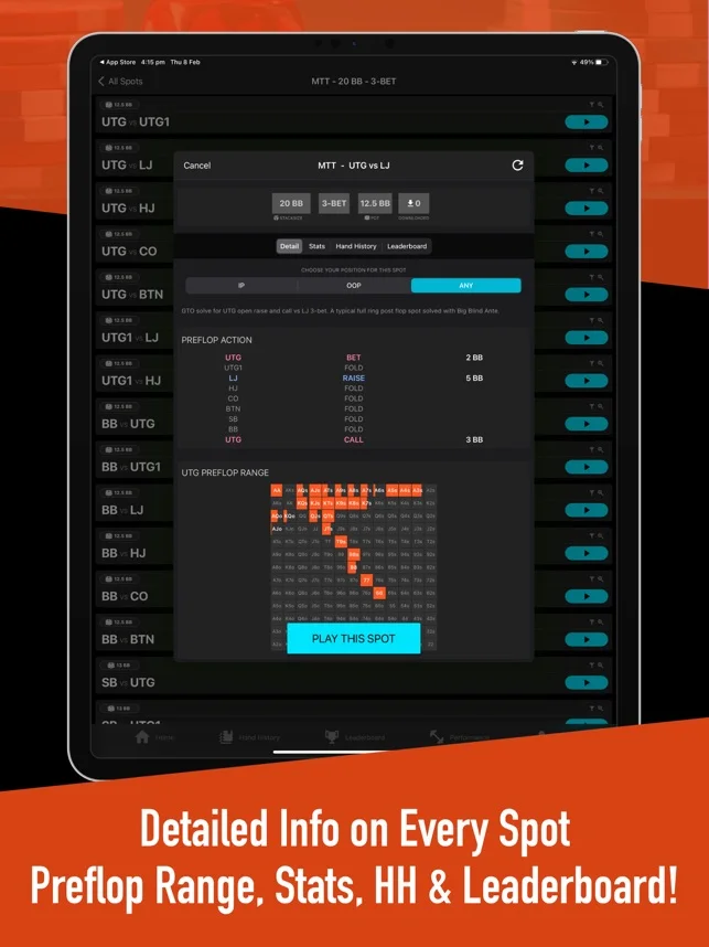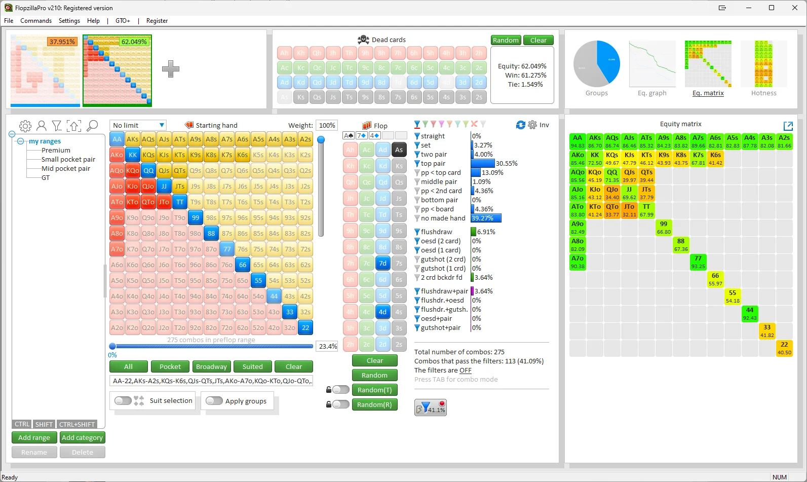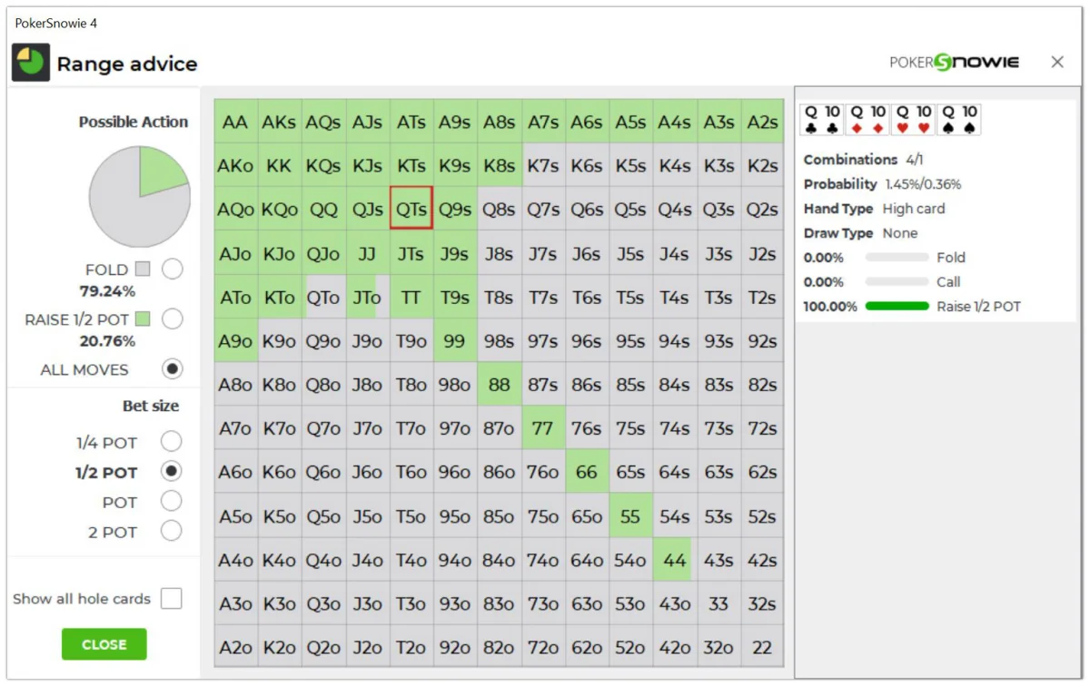 01 Mar 2024 equity hand charts HUD pot odds table selection winrate Occasionally everyone can win in online poker. But to get profit on a daily basis, you need to constantly work on the game, develop as a professional, and pump your own strategy. There are exceptions, but statistics say that players who "play with their heart" rather than their mind of course do not achieve huge success. On the contrary, the vast majority of professionals spend more time in training and analyzing programs than at the online tables! In this article, we'll look at what the best poker training software can be and how it helps you improve your game skills. Also after that, we will consider such alternative methods of training as mobile programs and poker books to take your game to the next level. Let's get started! What is a poker software? These are computer programs that you're used to. With their help poker players make the gaming process more comfortable: learning, training, and analyzing their game. Poker tools and poker software can be used to perform various tasks, for example, such as: Display statistics on your opponents. This is called a HUD (heads-up display); Save your hands and game history for further analysis; Practice in various preset conditions without risking your own money; Calculate the chances of winning (equity). For this purpose, you need a poker calculator; Learn to think in terms of ranges and put these skills into practice; Get more information about your opponents by looking at their past poker sessions statistics; Calculate the optimal game lines. For this you need a special solver — the most advanced poker program with a paid subscription (it's not suitable for beginners). Programs for professional training — what’s included in the «gentleman’s kit»? If you have just started your poker journey, you shouldn’t overload yourself with incomprehensible software from head to toe. At the same time, you should not neglect the advantages of regulars who’re using a basic training set of poker-software. Nowadays the perfect choice is: ICM Trainer. Piosolver. GTO Wizard. Equilab. PokerSnowie. Caption. Flopzilla. FreeBetRange. The poker software on the list is constantly being improved and updated. The usual interactive applications and analytical programs, which are based on traditional mathematical models, are being replaced by auxiliary utilities with elements of AI (artificial intelligence). Most of them are greatly beneficial to a player, which eventually transforms into a profit and results on the long distance. Now let's take a look closer at these poker training software. ICM Trainer The application is developed by PokerStrategy in two versions that can be installed on your computer. The simplified Light version offers a course of 10 lectures on the ICM model. The training is designed for tournament poker players familiar with the basics of strategy. In each lesson, you are asked to answer a question about a specific game situation by choosing one of two answer options. The next lesson becomes available after successful completion of the previous one. It's allowed to open the lesson when the game software is running. The full version includes an extended list of lessons and contains ICM Calculation — it shows calculations for game examples. Also the user can enter his own data for calculations. Note: ICM Trainer can not be used when the game application of the room is open. In such cases the user's account may be blocked. Go to the ICM Trainer website → PioSolver PioSolver is a GTO poker solver. This type of poker coaching software is especially popular among beginners because they don't need to spend months studying GTO theory alone. The PioSolver automatically adjusts the optimal game for specific situations (according to popular Nash equilibrium). Despite the simple interface of the program, we recommend not to buy a license and use the PioSOLVER free version first. The calculator allows you to set up scripts — special algorithms that automate most of the typical poker actions. For example, to calculate the most profitable Nash actions, the user can specify several parameters in advance. Then PioSolver will calculate the necessary set of actions and their potential profit. It usually takes a lot of time to calculate — in most cases the calculator needs several hours to analyze tens of thousands of possible poker combinations. In addition, the accuracy will directly depend on how exact the user has entered the data. If a player does not have enough free time, he can buy ready-made calculation packages. They will allow you to quickly form your own matrix on Nash equilibrium. In addition, in this way, your PC will not be subjected to heavy loads that arise during long calculations and output of the decision tree on a given request manually. Pricing: PioSolver Basic — free; PioSolver 3.0 Pro — $249; PioSolver Edge — $549. Go to the PioSolver website → GTO Wizard GTO Wizard is an advanced poker game analysis tool that helps players find optimal solutions to situations based on GTO (Game Theory Optimal) strategies. It offers tools to clearly understand mathematically based strategies and improve the quality of decisions during poker sessions. This poker application is presented as a complete web service and is designed for in-depth study of GTO and analyzing your game. This solver's specialty is that it contains more than 5 million ready-made solutions in its database and is ideal for honing your skills to play optimally — both preflop and postflop. Of course, there are a bunch of other solvers available today, but GTO Wizard takes things to the next level — by combining a user-friendly interface, speed and accuracy. It's a great choice for experienced players and beginners alike. Here's what's in store for you: Game Exploration: with GTO Wizard AI, you can utilize the functionality of a modern solver and the power of artificial intelligence to solve an