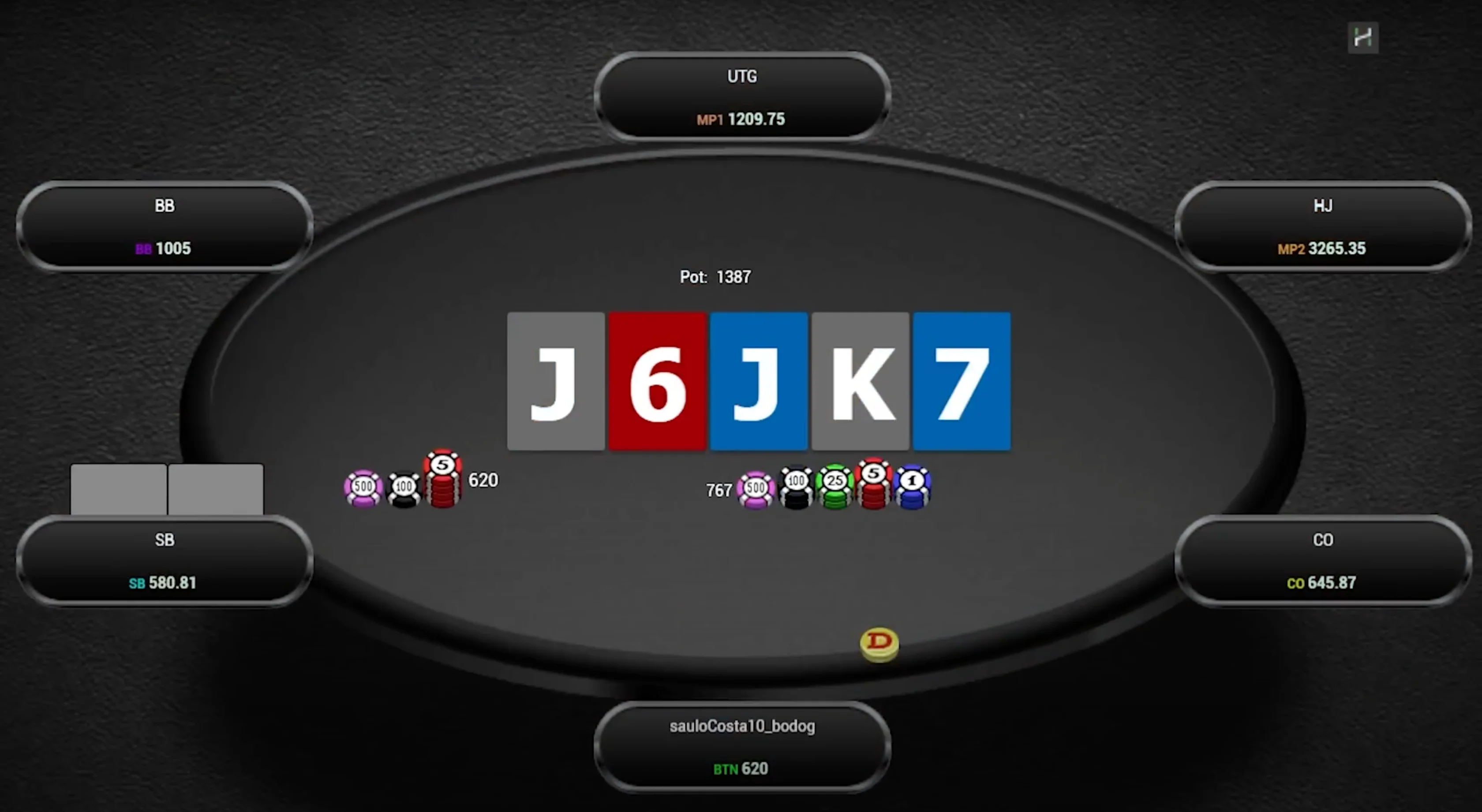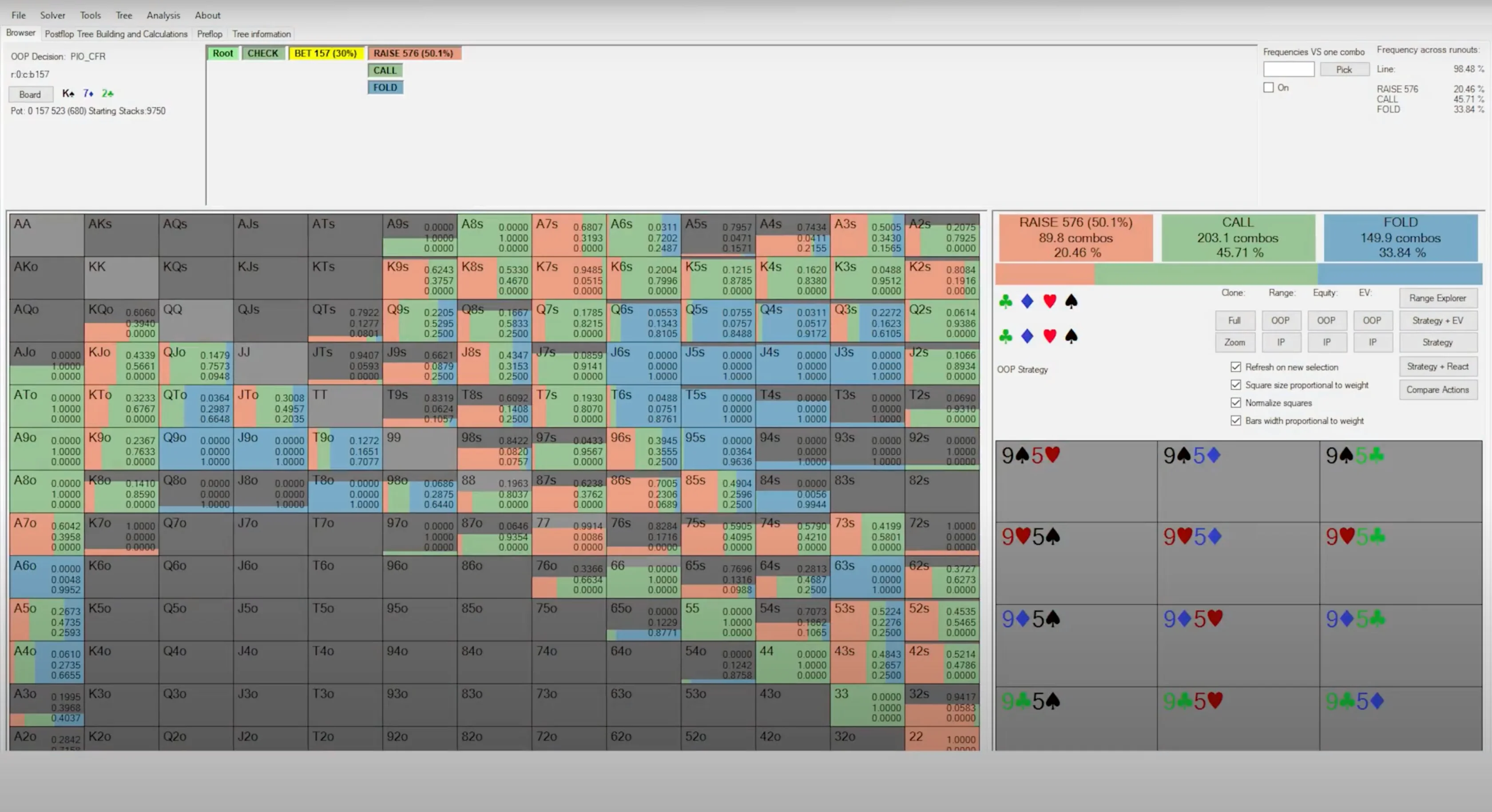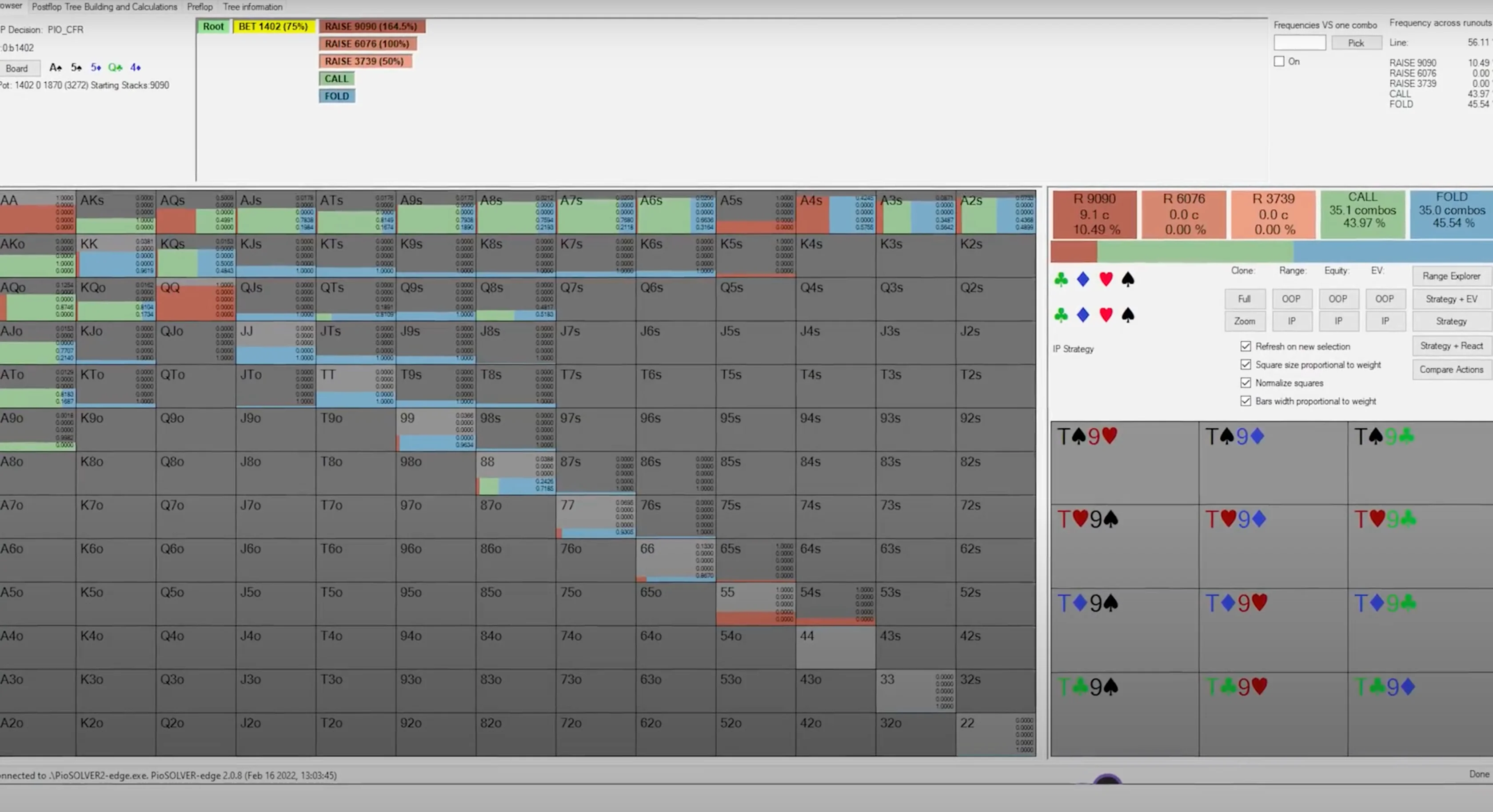 10 Jul 2024 exploit moving up stakes ranges Passive players make lots of mistakes playing poker, and the most recognizable one is their perceived inability to bluff enough. Because of this perceived leak, most people assume that the proper way of exploiting passive players is by over-folding against them. They see a passive player putting money into the pot and just snap fold their hand without much thought. However, this is not the way to maximally exploit passive players. What may seem obvious at first, just fold against them, is only the tiny tip of the iceberg. There's much more you can do to exploit them. After spending years studying with solvers to understand optimal behavior, thousands of hours analyzing population tendencies to understand human leaks, and developing my own automatic node lock-in software to study max exploit strategies, I've developed what I call the "Three Levels of Exploitation Framework." In this material, I'll apply this framework to the context of exploiting passive players and show you how much more money you can make against them. So, let’s go! The First Target — Action Level of Exploitation The first level of exploitation is the level that 99% of poker players operate at. It’s probably the level you operate at right now, and it's the level I mentioned at the beginning of this material. This level is the "Exploiting the Target Action" level. At this level, all you care about is adjusting your poker strategy after the target action from your opponent. The simplest example is when you over-fold against someone you think is under-bluffing. You adjust the part of your strategy that comes after your opponent's action of betting. It is, in fact, true that if your opponent is under-bluffing, the correct response is to start folding many hands you would previously call with. This is particularly relevant on the river, where if your opponent fails to reach the necessary amount of bluffs to make your bluff-catchers indifferent, you should respond by folding all of them. This will happen quite frequently against the more passive regulars in your pool. For example, take a look at the bet-bet-bet line range composition for regulars with a won-at-showdown (WSD) percentage lower than 47%. We can see that for the 75% bet sizing, they have, on average, only 23% of bluffs. When someone bets 75% pot into you, they're laying you pot odds of 30%, which means they need to be bluffing 30% of the time so that your bluff-catchers can break even on a call. Since they're under-bluffing by 7%, all of your bluff-catchers are now negative EV investments. When we input such deviation into a node-locking program, the result is, not surprisingly, that you should fold all hands that can't ever be EV-neutral or chop with them. That being said, be careful with making extreme adjustments based on just your feelings about a particular player or action. Even passive players can end up over-bluffing certain lines due to their poor range construction. One classic example is the check-check-bet line when your opponent is the caller out of position. Let's say you open on the button and get called by the big blind. Your small c-bet gets called on the flop, the turn goes check-check, and then the villain bets the river into you. The same regular profile that we saw under-bluffing the triple-barrel line by 7% actually over-bluffs the 2/3 sizing by 8%. It’s the same player but different lines and different behavior. If you want to exploit passive players, go ahead and do it, but make sure you don't overgeneralize. You should still call those people down sometimes. The second level of exploitation goes a bit beyond what's obvious. It’s less about interpreting exactly what someone did and more about figuring out what that actually means from a broader perspective. In the context of bluffing the river, for example, constructing a balanced betting range requires betting the appropriate amount of bluffs to balance the amount of value bets you have. If you decide to bet for a pot size, for example, and you have 10 value combos, you need five combos of bluffs to be properly balanced. So, you go into the pool of your potential bluffs that you got to that particular scenario with and draw five combos to place into your betting range to make it balanced. The remaining bluffs go into your checking range. What happens when you check? Now, positions are reversed, and it's your opponent who decides on the proper bet sizing to utilize. Based on the amount of value bets he has, he will pick the necessary amount of bluffs to be balanced. You, on the other hand, will have to construct a properly balanced defense strategy against his bet. If you call too much facing a bet, your opponent can exploit you by never bluffing, and then he makes a lot of money with his value bets. If you instead fold too much facing a bet, your opponent can make money by over-bluffing against you, as your over-folding tendency is making his bluffs profitable. There are two ways someone can fold too much facing a bet. The first one is by folding with hands they're actually supposed to call. In theory, imagine you're in the big blind against the small blind, and you get to the river after the flop went check-check and you called a small turn bet. Against another river bet, it's pretty common for the defense strategy to include third and fourth pair type hands and even ace-highs. If you fold these hands that you're supposed to call, you'll likely be over-folding. The second way someone can fold too much is by having an excess of weak hands in their range. In the same situation, imagine now that you're the small blind. You bet the turn, but once you get called, you decide that your opponent is likely to call you too much on the river, so you end up giving up most of your bluffs, which your hands are supposed to bet sometimes. Now, when you check and face a bet, even if you call with the bluff catchers in your range, you will be folding t