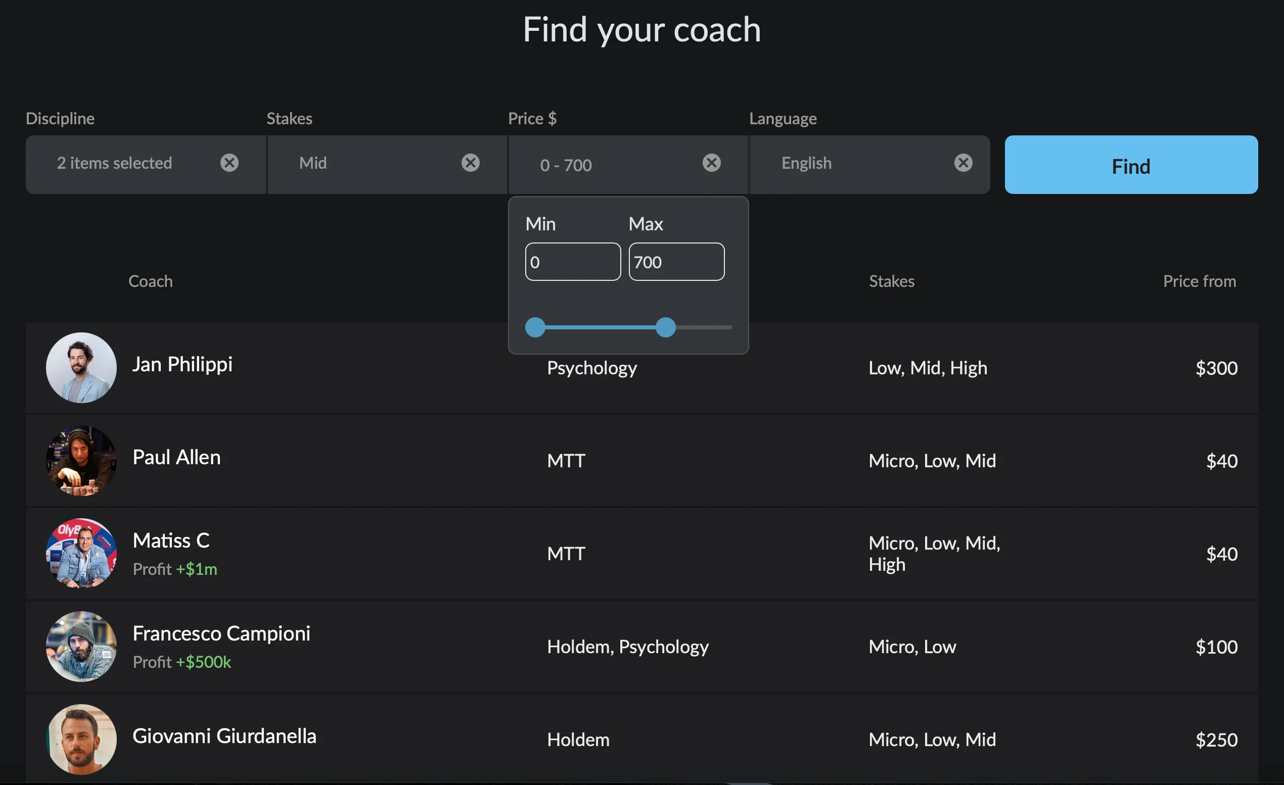 19 Apr 2024 A-game discipline mental game motivation studying This article is dedicated to a hot topic these days — MTT Poker Coaching. What approach will be the most effective and why is it important to be trained nowadays? Let's get to the bottom of it! Three categories of MTT trainers The first thing to understand is what categories of MTT coaches exist. There are three of them: Ultra regulars, the top 1% of the field, play with the highest ROI; Successful players who win at all their MTT limits. They have normal range and work hard on their game; Players who play huge distances with an ROI of 7%+. All three categories seem very attractive for further study. We have listed them for "general development". There is only one way out in any training — the most successful players from your limits, who are definitely stronger than you, should coach you and further analyze your poker game. It may seem that paying them a huge amount of money is not very profitable, but if you save at least 5% on 5,000+ tournaments. So it will be a smart investment! $100abi/20x6,000 = $3,000. Afterwards, MTT training will be definitely worth it. Effective coaching methods Most players seek the services of the mentors when they start losing and have no confidence in future poker sessions. In fact, it is much more important to understand your real level after you start winning. Many beginners give up theory and go to pure practice because of the improperly organized training process. They are intimidated by the huge amount of study literature and articles, so they get confused about what they have already studied and what they only planned to approach. Eventually, the tired student decides that analyzing and hand posting is enough to become a pro. How to organize a training plan At the beginning of your training, theory should make up the majority of your time: for every hour of practice, there are approximately 10 hours of theory. Once you have the basic terms down, you should find some poker books and collections of articles, depending on your level. The more the literature deals with practical techniques, the more practice there should be. It’s not necessary to immediately deal with the learned situation in the room. Enough to take notes of all the tips, and after 4-5 hours of theory to move on to practice. Once you have understood the material that gives basic tips on the game, move on to more narrowly focused literature. It’s not necessary to study all the nuances of poker at the same time, but enough to decide on 1-3 directions and look for individual training manuals. After that knowledge will be better memorized, and the learning process will be organized and structured. Post your hands on the forums and listen to the teachers’ opinion, which gaps in poker strategy should be eliminated. In addition to theory and practice, the student should pay attention to self-analysis. This discipline should follow immediately after each hand, in order to identify mistakes in the players’ tactics. What MTT training consists of Theoretical material is gathered from literature, video lectures, discussion of hands, etc. It’s also recommended to read the books, even 2-3 times in a circle. The first time to familiarize yourself with the MTT format and presentation of the material, to clarify for yourself unclear points. Or with the help of a poker coach. The second time you should start working with the material: take notes of the current leaks, so that everything is at hand during practice. Also you shoukd highlight interesting ideas and write comments. The third time the literature is read after some time to refresh your memory. For convenience, you can say new knowledge aloud, so the material will be better remembered. It can also be done in a whisper, but the student must be able to hear his speech. To post hands, choose only live forums where users communicate strictly on the topic. In our case we talk about MTT. Actively participate in the discussion of your own and other people's hands in order to effectively use all the resources of the poker forum. Before the training session, make a list of short questions for the MTT coach in advance. At the lesson he will not have time to answer long and complicated questions, but you can ask them on the forum. Do not enter both the game and the training session at the same time. Otherwise you will not be able to concentrate on either lesson, so you will lose lot of hands and not remember the mentor’s words. After analyzing and posting hands, you should reproduce the strategies of the game. It’s better to do it on play chips to understand the structure of the studied tactics and not to lose real money. But it is impossible to objectively assess the usefulness of the MTT strategy with free games. Here the manner of play is very different (aggressive) from the behavior at the tables for real money. At the initial stage of learning poker, neither wins nor losses matter — all lost money is considered as a contribution to learning. In practice, you should learn to calculate outs and their probability, read your opponents and develop strategies against each type of player. For practical poker training, don’t open more than three tables. This will be quite enough for a dynamic game, and attention will not "jump" between screens. You can also practice in a company. Here's how it works: every participant opens his own table, and actions are discussed by voice communication. This way you'll learn to look at the situation from different angles. Why should a poker player hire a MTT coach? Playing poker requires constant learning. And to get good at online MTT, you need to delve into it. Yes, some people like to solve puzzles alone, but it's not always productive. You can spend countless nights studying MTTs specifics, board structures, or, for example, researching different ranges of overpair raises, and still not make progress. Players, especially beginners, have ton
