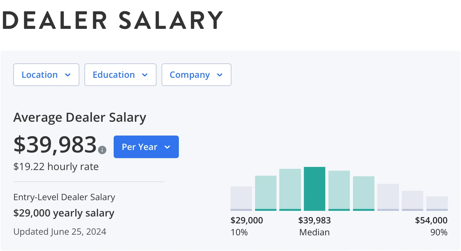 28 Jul 2024 studying The main function that is assigned to the casino dealer is to ensure the gaming process and control the compliance with the rules of the game. It sounds pretty simple, but in fact the profession isn’t just about dealing, and has many nuances and pitfalls. Which ones? Let's look at them in detail below. What does a dealer do? A croupier is a professional who is responsible for more than just dealing cards. Here's a list of his main duties: Making sure poker players follow the rules; Calculate bets and pot sizes; Determine the winner after the showdown; Giving instructions and recommendations to beginners; Assist in resolving controversial situations — in case of major incident, invite tournament director or manager of the casino; Monitor the rules of poker etiquette; Maintain the speed and pace of gameplay; Exchange chips for money, if allowed in the establishment. So let’s learn how to deal poker — main duties, specifics of home games, possible studying, etc. How to deal poker professionally – job duties Dealer's profession has several peculiarities that poker players should be aware of: shuffling, poker dealing, managing the bankroll in the game, controlling the observance of the bidding rules, etc. Card shuffling The shuffle is the beginning of any card game. The one who deals the cards in poker game is a professional poker player. They need to be shuffled thoroughly. This will allow you to get as unpredictable cards as possible. There are two shuffling techniques: Riffle shuffle; Hindu shuffle. In casinos, the first method is more often used, and each new hand is allocated its own deck. According to the regulations of gambling establishments, the dealer shuffles it four times and only after that moves the top card. Poker players must not see any denomination. Having this information, professionals can use it to their advantage. If during the shuffling process one or more cards become visible or fall out, the dealer leaves them out and continues shuffling. This situation is not considered a mistake and the hand goes on. Distributing cards The rules of dealing cards determine the distribution of the hand to poker players. In Texas Hold'em, two cards are dealt clockwise to each player — one pocket per one betting round. Hole cards are dealt first to the player to the left of the dealer. There are several ways of dealing, but there are two of the most popular: European; American. First of all, the top card is moved so that it is on the table, and then it is given to the poker player. The top card is removed and thrown face down. In most casinos and gambling establishments the way of dealing is known from the very start. Managing the bank during betting rounds Managing the betting process consists of: Announcing the size of the bet out loud. Not all poker players put out chips and call their number. The croupier needs to count them and announce them to all participants. If a player names the amount, the dealer should check it and also say this information out loud. Form and distribute the pot. There can be two pots in the game — main and side. Example: one of the participants went all-in, and the others, with more chips, raised his bet. Accordingly, they contributed a larger amount and created an additional pot. The dealer's task at the end of the hand is to distribute the pot among the winners. Move the chips towards the winner. Also after the end of bidding on the flop, croupier announces the number of participants who stayed in the game. Determining the winner of a hand The dealer in poker must control the rules of bidding. Make sure that on preflop the player to the left of the croupier in the big blind position starts the turn. On the following streets, the poker player sitting clockwise after the button should be the first to make a decision. Another key function of the dealer in poker game is to determine the winner at the end of each hand. It is his word that counts in disputes between players. If one of the players thinks that the croupier is wrong, the manager will come to the table and make the final decision. His duties include, among other things, controlling the actions of the dealer and the participants at the current poker table. Dealer's actions during heads-up play Heads-up in poker is a one-on-one game. In such hands, there are some peculiarities in the work of the dealer: Preflop. The button position in a game between two participants is passed clockwise to each poker player in turn. Whoever is on it is the first to bet the small blind. Postflop. On these streets, the poker player who made the big blind is the first to make a decision. Cutting card rules for Texas Hold'em In Texas Hold'em, for safety reasons, there is a rule of cutting cards for the dealer. It goes like this: After shuffling the dealer must align the sides of the deck and put it on the table. Next, a special card should be used to cut off the top (at least five) and put them together. Then the bottom deck should be placed on top of the top deck, and the poker players should not see any denomination. The dealer is required to follow these rules in every game. He must cut off one top card and fold it into a separate stack before distributing the community cards to the table. Features of home games Have a good time playing poker, you can not only in the casino, but also at home. This requires a standard set: a deck, chips and a button. Sometimes it includes buttons for the positions of the big and small blinds, as well as a special card for the cutoff. Before the start of the hand you should always discuss the size of mandatory bets, the smallest and largest number of chips at the table, the order of their addition (re-buy) and so on. The poker player sitting on the button should control the observance of all the rules of the game. The duties of the dealer take turns from one participant to another. The dealer in poker should not participate in the deal, but usually outsi