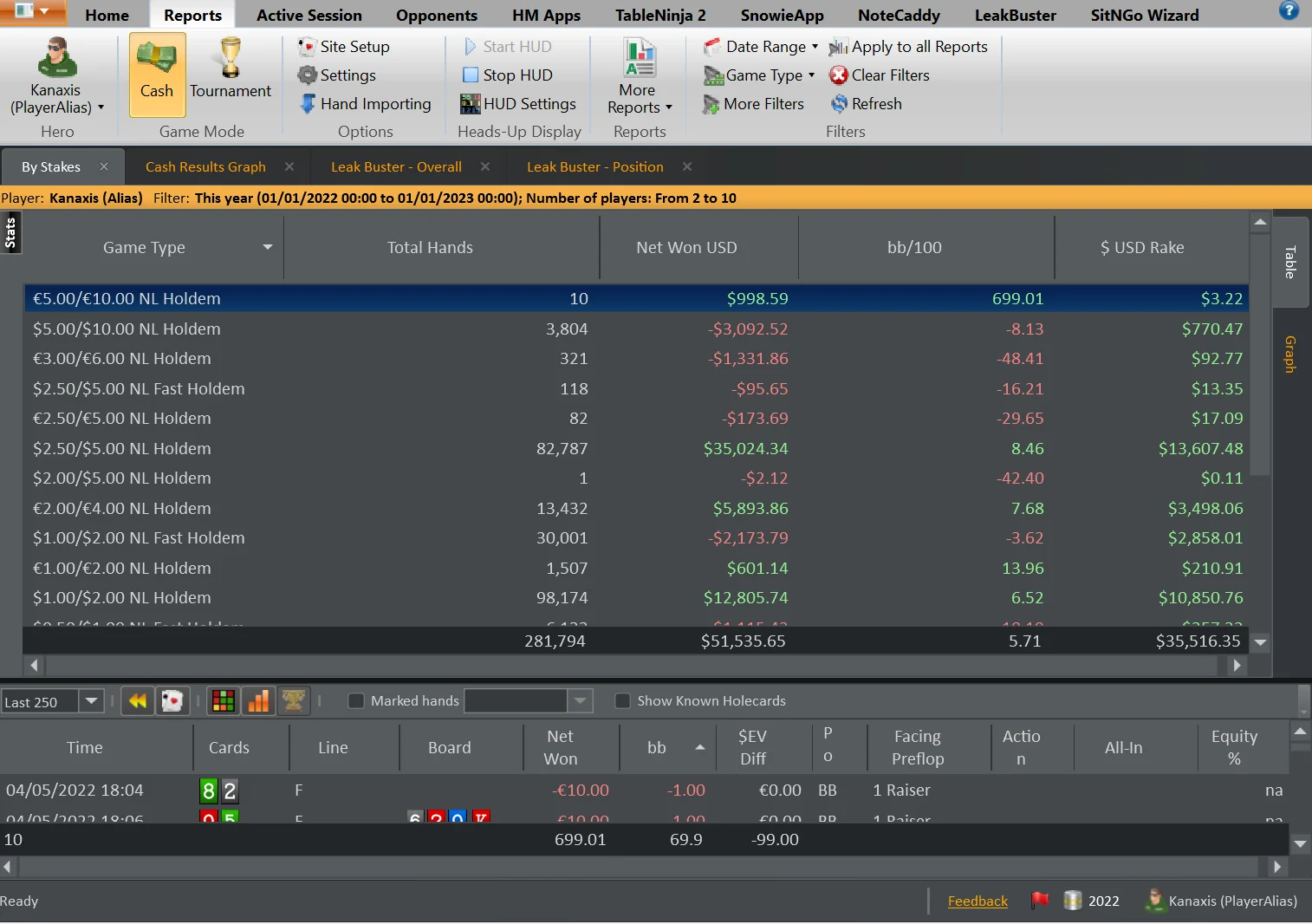 • Database/HUD Stat analysis and filtering of fundamental issues in hands